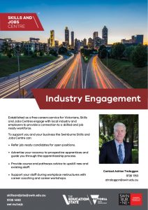 Established as a free careers service for Victorians, Skills and Jobs Centre’s engage with local industry and employers to provide a connection to a skilled and job ready workforce. To…
